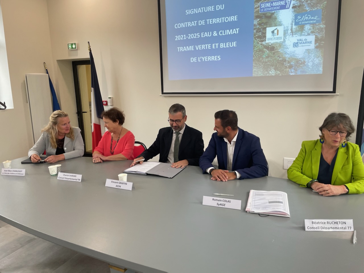 Après presque 2 ans de contrat effectif, le contrat de territoire « eau & climat " Trame Verte et Bleue de l'Yerres a été signé le 13 septembre 2022.